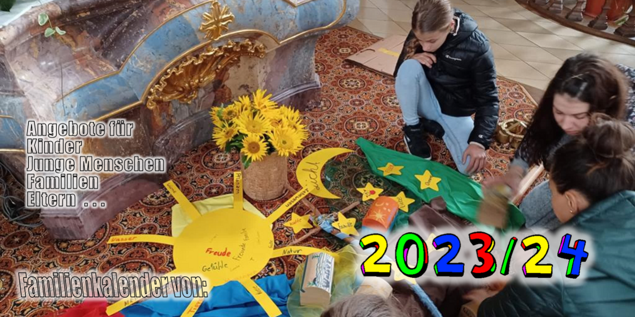 Der neue Familienkalender „Kunterbunt“ der Pfarreiengemeinschaft Memmingen, gültig von September 2023 bis einschließlich Februar 2024, mit vielen interessanten Angeboten für Kinder, junge Menschen, Familien und Interessierte ist da und liegt in den Kirchen und im Pfarrbüro zur kostenlose Mitnahme aus! Die verschiedenen Vorbereitungsteams freuen sich auf Ihren Besuch und schöne Begegnungen!